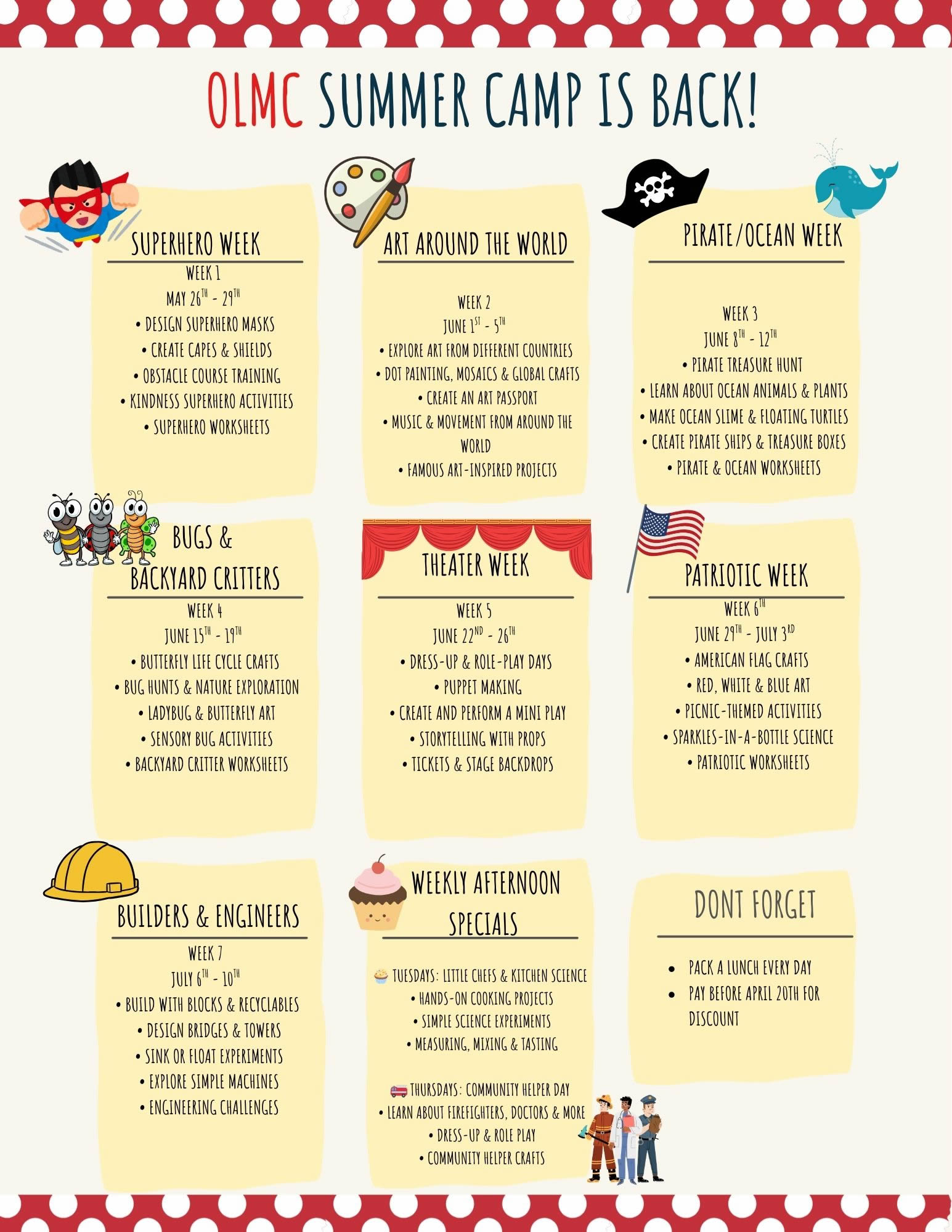 Who: For all incoming OLMC students, Kindergarten - 8th grade